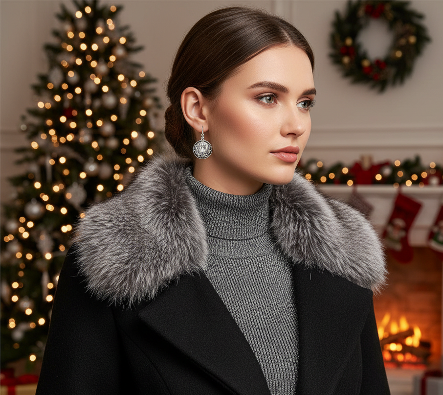 Lovely round black and silver fashion earrings with round rhinestones to highlight the center of the piece. It can be worn with anything in your wardrobe and to any place you go. It makes the perfect gift for all those special people in your life. It also makes a perfect gift for yourself. Go ahead, you deserve it!! Does not come in a gift box. The earring is 1.6" in length. Colors: Clear, silver, black.