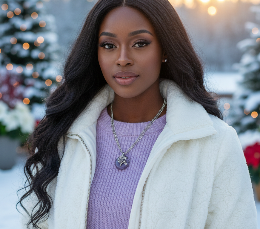 This is the perfect one-of-a-kind necklace for those perfect special days. Made with an SP Figaro chain to hang gracefully from your neckline. The focal is a beautiful Amethyst donut stone that is captured by a lovely sterling silver bail. Shimmering with both Sterling Silver and Amethyst this necklace is a statement-maker for sure. It makes the perfect gift for all those special people in your life. It also makes a perfect gift for yourself. Go ahead, you deserve it!! Remember it's a one-of-a-kind item. No one else will be wearing the same thing when you go out. It's all about you. Comes in a gift box. The necklace is approx. 21" in length. Extender 2".