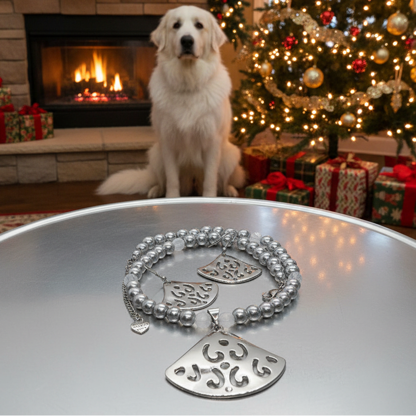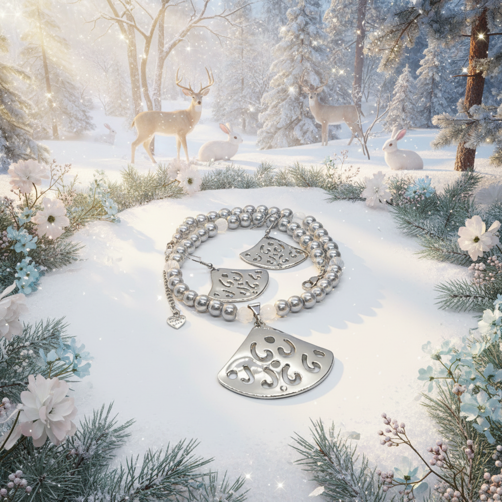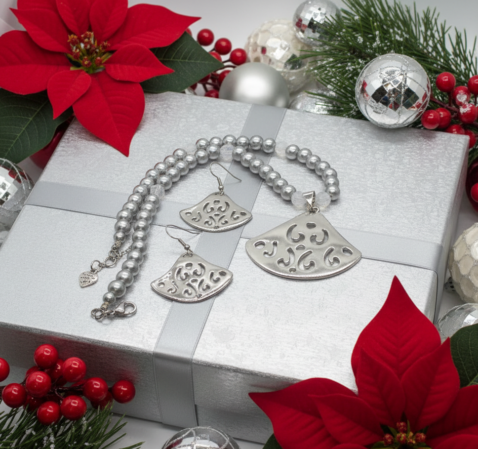 Discover the elegance of this one-of-a-kind silver beauty necklace set, crafted especially for those who appreciate sophistication. Made with exquisite Swarovski Air Blue Opal crystal round beads and stunning gray glass pearl beads, this design is truly timeless. The standout SP pendant, embellished with a small rhinestone, adds an extra touch of glamour. To complete the look, matching earrings are included, making this set the perfect gift for your loved ones—or even a delightful treat for yourself. You deserve it! Stand out with this unique piece that guarantees you won’t see anyone else wearing the same design when you step out. It’s all about celebrating you! Presented in a beautiful gift box, this set features high-quality materials: glass pearl beads, Swarovski Air Blue Opal beads, a silver-colored pendant with rhinestones, and chic matching earrings. The necklace is approximately 17 inches long, with an extender that adds 2 inches for versatility. Don’t miss your chance to own this exclusive set. Purchase or explore more at: https://artistryjewelry.net/products/silver-beauty-necklace-set