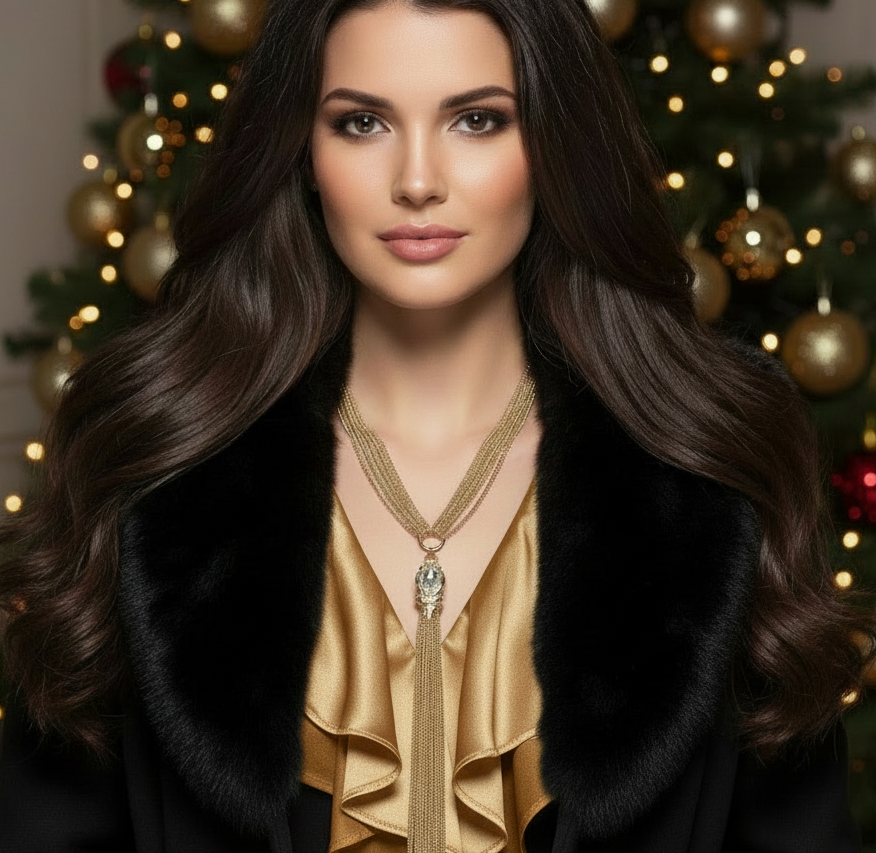 This is a lovely gold-tone necklace that flaunts an exciting snake head that caresses your beautiful neck. Think of the excitement this will bring as you walk into that special event wearing this gorgeous necklace. It also makes the perfect gift for all those special people in your life. It also makes a perfect gift for yourself. Go ahead, you deserve it!! Comes in a gift box. Material: long chain tassel, marquise glass stone in head. Size: 18 inches long with a 13-inch drop. Comes in a gift box.