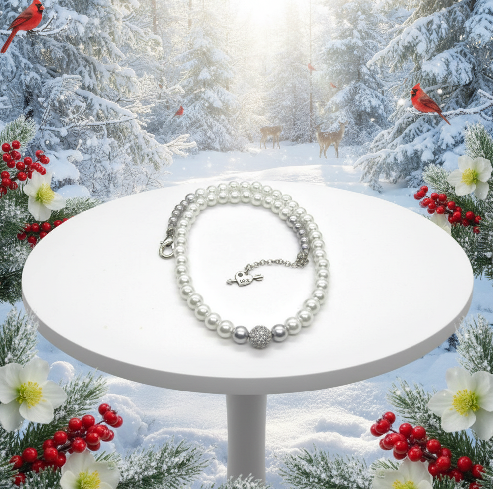 Snow Beauty is a one-of-a-kind necklace designed using a beautiful PAVE Czech crystal disco ball and gray and silver glass Druk beads. To top it off the extender chain has a lovely heart charm on the end of the chain. Gorgeous flow and brilliant light flickers that will caress the body. This necklace will make a fabulous gift for those special people in your life, or just a small gift for yourself. Go ahead, you deserve it! Remember, it's a one-of-a-kind item. No one else will be wearing the same thing when you go out. It's all about you. Comes in a gift box. Approximately 16 inches in length. Has a 2-inch extender chain.
