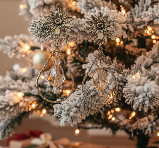 Beautiful Golden Shadow Swarovski crystal beads that hang graciously from a delicate hoop finding. This set of earrings has two beautiful Swarovski Golden Shadow Cosmic beads that shine brilliantly and are accented with lovely flowers. In addition, two small round Swarovski beads accent these beautiful pieces. It makes the perfect gift for all those special people in your life. These earrings also make a perfect gift for yourself. Go ahead, you deserve it!! Remember it's a one-of-a-kind item. No one else will be wearing the same thing when you go out. It's all about you. Comes in a gift box.