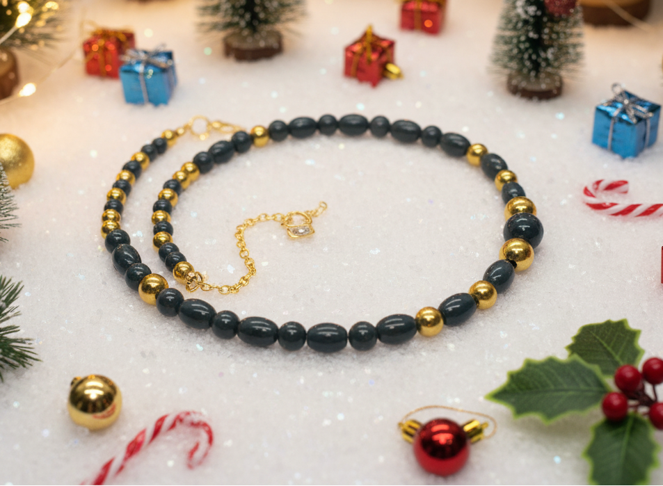 Appealing Black Onyx and Gold Hematite Necklace - handcrafted by Artistry Jewelry