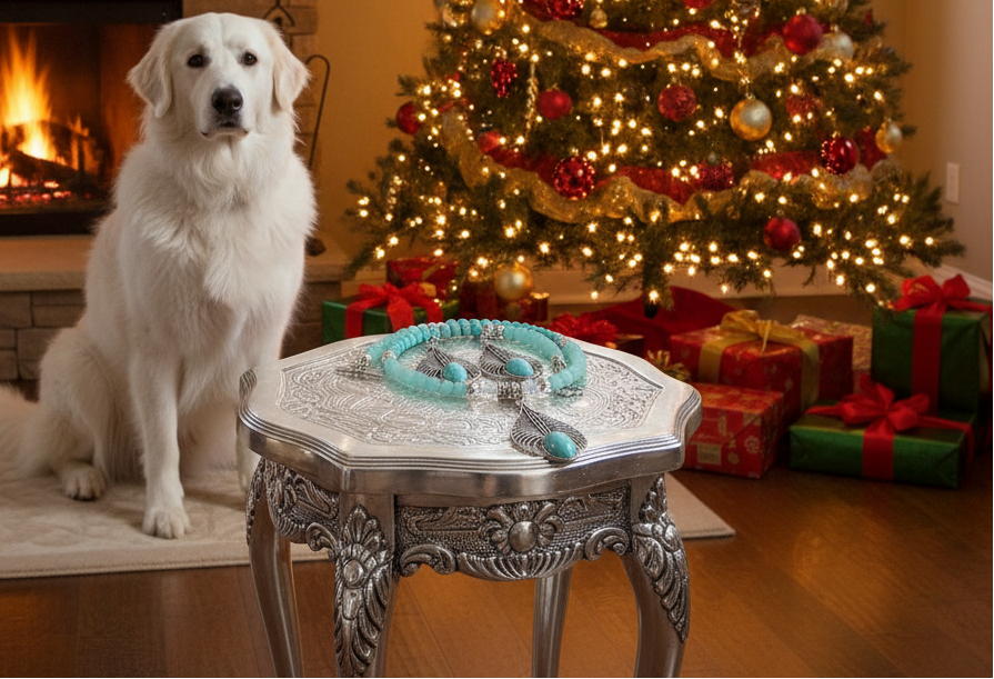 Fabulous Turquoise, Blue Crystal, Silver, and Magnesite, Semi-precious, Beaded Necklace Set - handcrafted by Artistry Jewelry